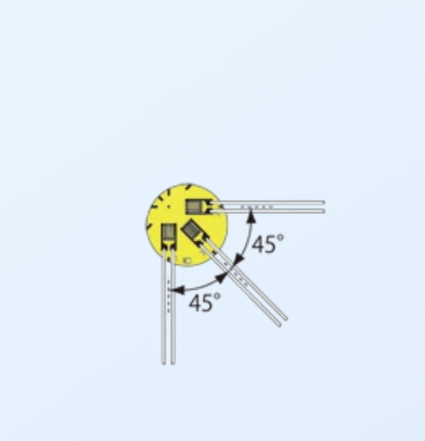 雙軸,3軸應變片的顏色區分為雙線式時的0°: 紅色,90°: 白色,45°: 綠色